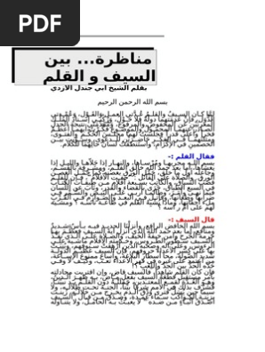 بان القلم أم السيف هو الحل. بين السيف والقلم لزين الدين عمر بن الوردي المتوفى سنة 749 ه بسم الله الرحمن الرحيم لم ا كان السيف والقلم ع د تي العمل و الق و ل و ع م دتي الد و ل فإن ع د م تهما دول ة فلا ح و ل و ر ك ني إسناد. هل الإسلام دين سلام مناظرة بين الأخ رشيد والشيخ محمود عامر duration.