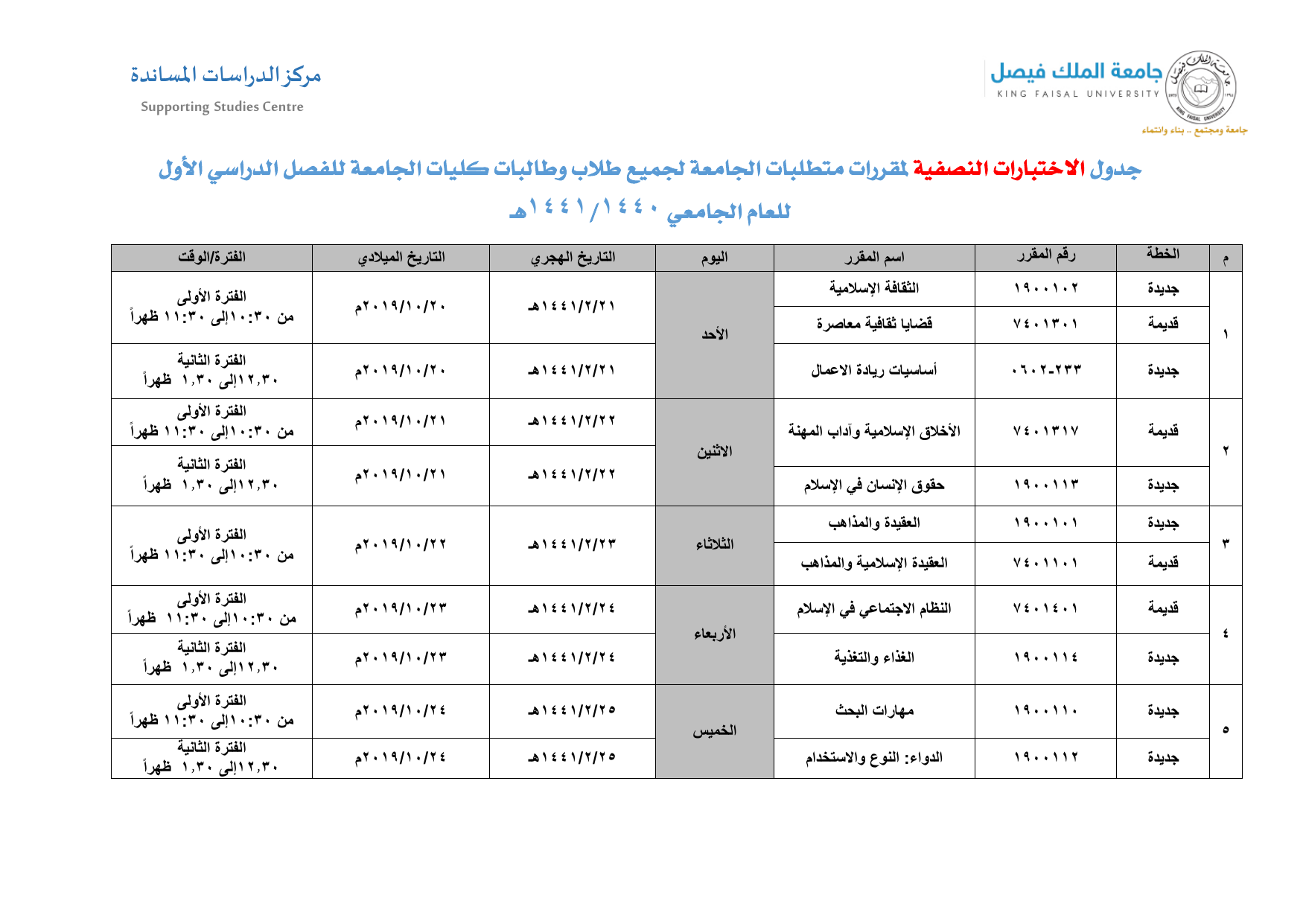 موعد التسجيل في جامعة الملك فيصل. الجامعة تعتذر عن استقبال الطلبة الزائرين للدراسة في الفصل الدراسي الأول 1441 1442. التحويل الخارجي إلى جامعة الملك فيصل. عمادة القبول و التسجيل محدد. تعرف على مواعيد التسجيل في جامعة الملك فيصل للعام 1440 1441هـ بكالوريوس ودبلوم للسعوديين وغير السعوديين مع كافة الشروط ومعرفة التخصصات المتاحة.